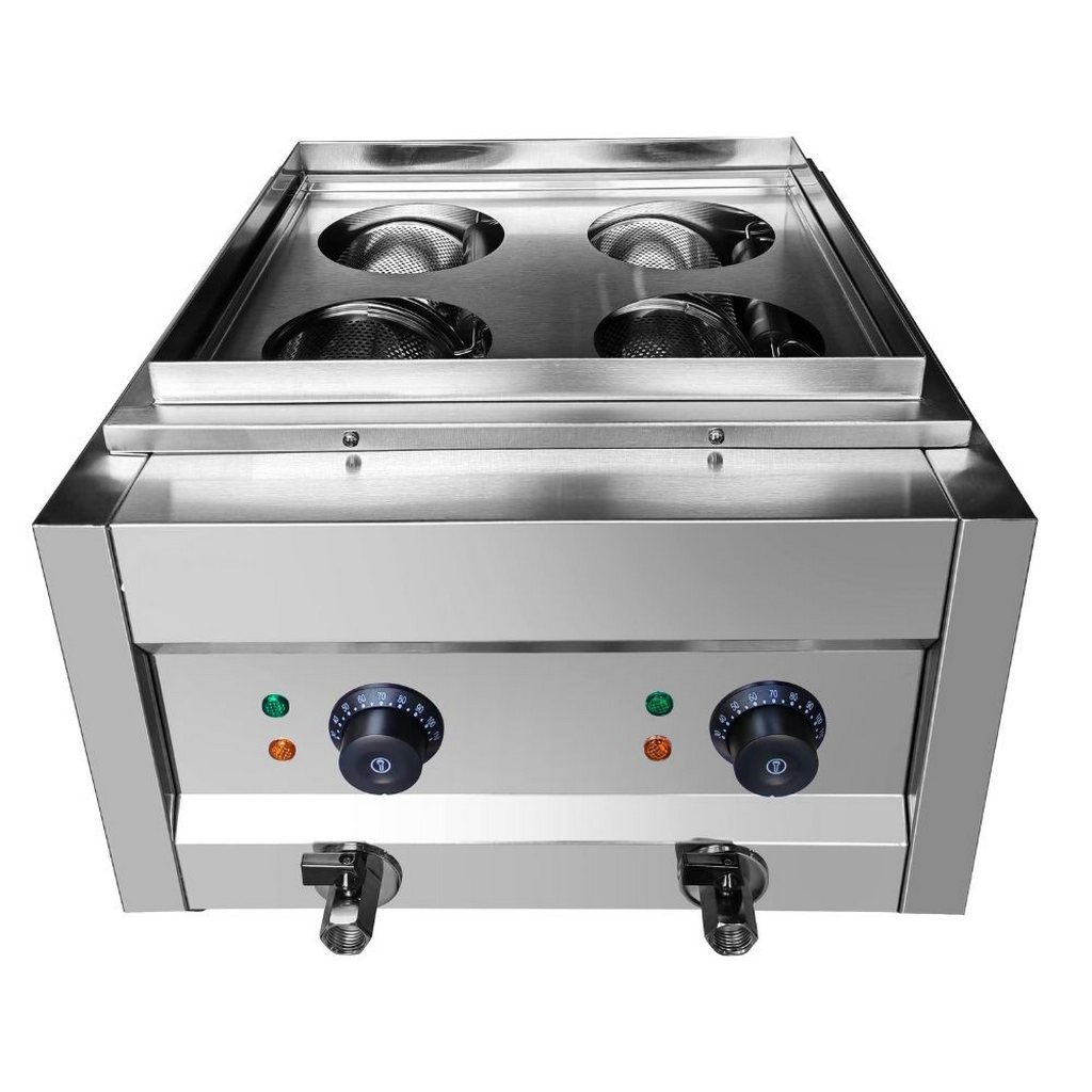 Επαγγελματικός βραστήρας ζυμαρικών που μπορεί να μαγειρέψει γρήγορα μια μεγάλη ποικιλία από ζυμαρικά σε καλάθια. Είναι κατάλληλος για καθημερινή χρήση σε επαγγελματικές κουζίνες. Η αντίσταση σε σχήμα U παρέχει πιο γρήγορη θέρμανση. Καλάθι υψηλής ποιότητας από ανοξείδωτο ατσάλι 201 και ανοξείδωτο κάλυμμα αποθήκευσης θερμότητας. Σχεδιασμένος να αποτρέπεται η υπερχείλιση. Λειτουργεί μέσω θερμοστάτη. Διαστάσεις διχτυωτού κόσκινου 130x150mm. Εύρος θερμοκρασίας 30-110?. Ιδανική λύση για επαγγελματικές κουζίνες εστιατορίων, ξενοδοχείων, σε κρουαζιερόπλοια, catering, ιταλικά εστιατόρια κ.α.
