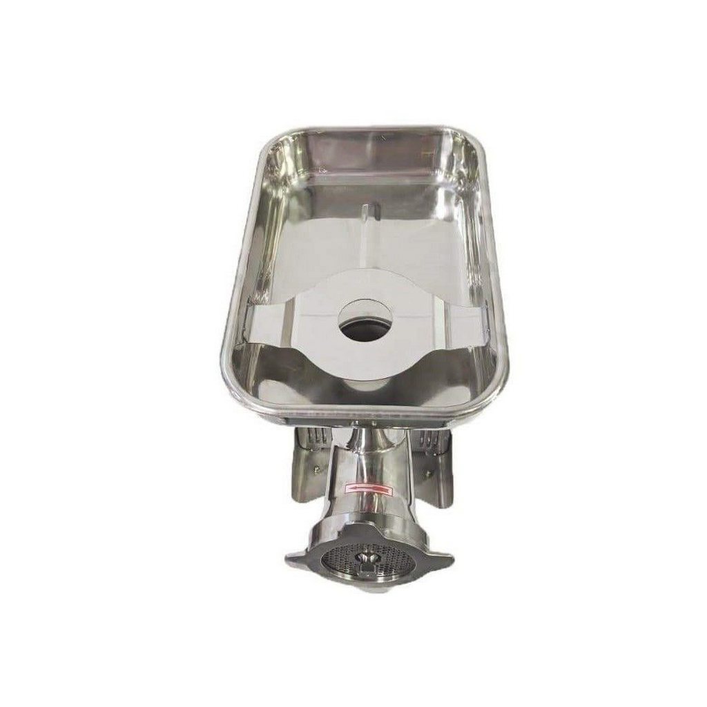 Κρεατομηχανή εξ΄ολοκλήρου inox με ατσάλινο γρανάζι για την κίνηση και μπούκα-σαλίγκαρος-στεφάνι από inox. Διαθέτει διακόπτη όπισθεν. Εγκρίσεις: CE, ETL, RoHS Listed. Ιδανική για εστιατόρια και κρεοπωλεία.