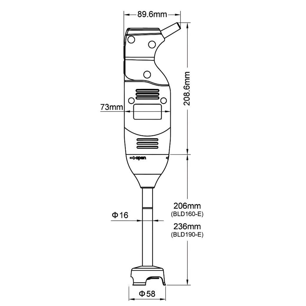 Υψηλών προδιαγραφών ραβδομπλέντερ με ανοξείδωτα μαχαίρια και καμπάνα για επαφή με τρόφιμα. Θερμικό ρυθμιζόμενο μπουτόν (VV) προστασίας από υπερφόρτιση και εργονομική λαβή για τον χειριστή. Εύκολη συναρμολόγηση μετά τον καθαρισμό. Πωλείται με διαφορετικούς ανοξείδωτους άξονες καθώς και με σύρμα. Κατάλληλο για επαγγελματική χρήση για εστιατόρια, ξενοδοχεία, επαγγελματικές κουζίνες, ζαχαροπλαστεία, gelato shop, βάφλα-κρέπα, snack bar, coffee shop, κρουαζιερόπλοια, κατασκηνώσεις, catering. Ιδανικό για παγωτά, σαντιγί, σούπες, σάλτσες, πουρέ φρούτων και λαχανικών.