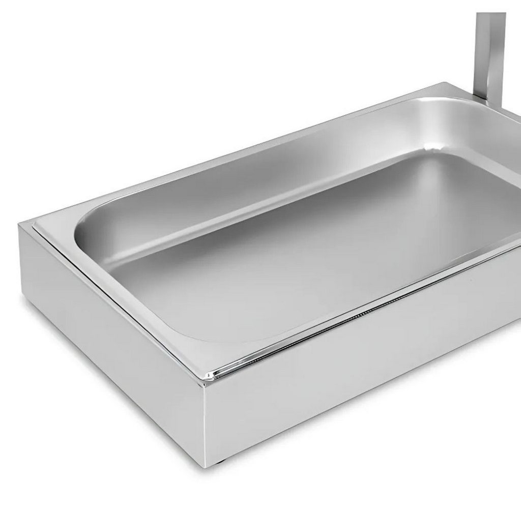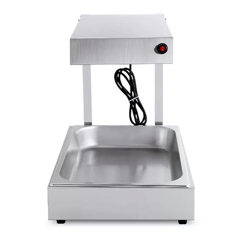Επαγγελματικός Θερμαντήρας πατάτας κατασκευασμένος από ανοξείδωτο ατσάλι (201) για εύκολη εσωτερική και εξωτερική συντήρηση. Διαθέτει βάση που περιλαμβάνει ένα βαθύ τηγάνι δοχείο για να διατηρούνται οι τηγανιτές πατάτες φρέσκες και υγιεινές. Με δοχείο GN1/1 65mm με πάχος 0,7mm. κατασκευή από ανοξείδωτο χάλυβα 201 κατά της σκουριάς για να εξασφαλίζει μεγαλύτερη διάρκεια ζωής. Αυτόματη σταθερή θερμοκρασία 40-70°C για να διατηρεί το φαγητό ζεστό. Αντιολισθητικά λαστιχένια πόδια για να αποτρέπουν την ολίσθηση.